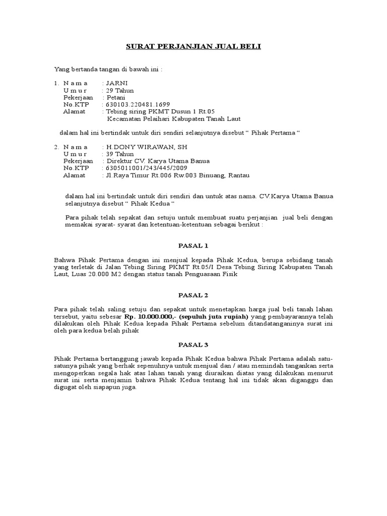 Surat Perjanjian Jual Beli Alat Berat Kumpulan Surat Penting