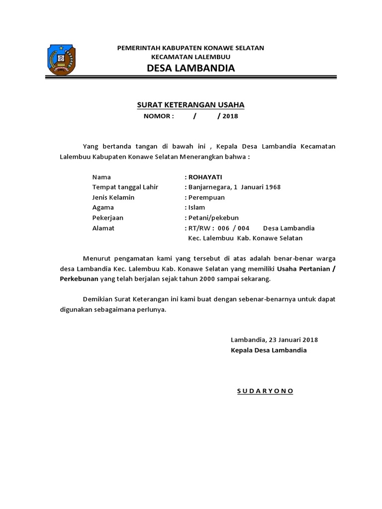 Contoh Surat Keterangan Usaha Dari Desa Doc Nusagates