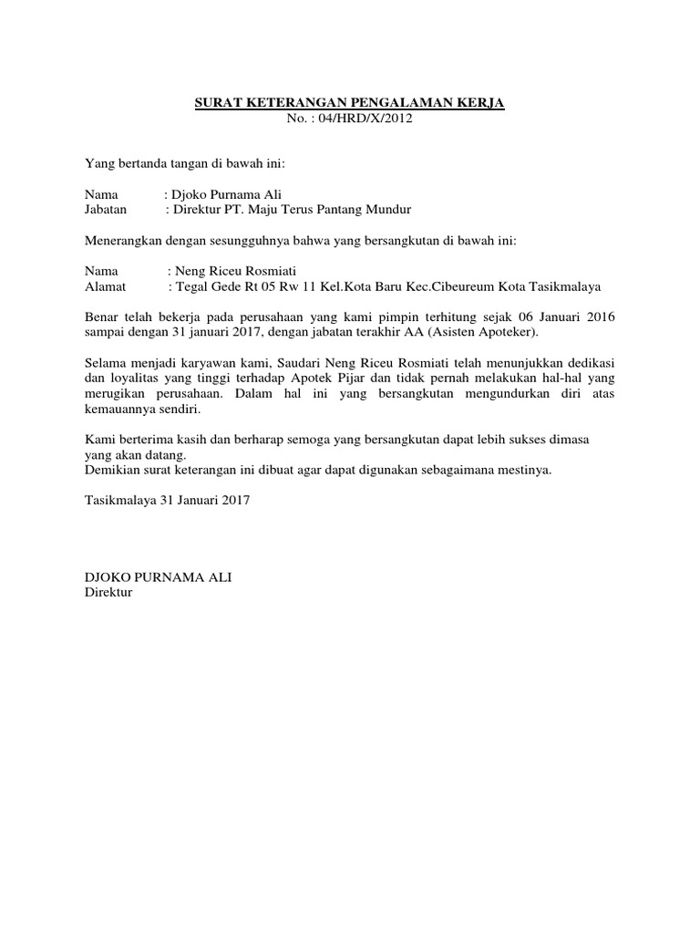 | Judul: Contoh Surat Keterangan Kerja Di Apotek |